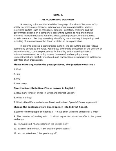 Pada post kali ini tidak akan saya bahas lebih lanjut mengenai pembahasan bentuk reported speech karena sudah pernah saya bahas materinya akan tetapi lebih berfokus pada bahan latihan lanjutan dari pembelajaran materi ini. He says to him, " reported speech adalah suatu kalimat atau pembicaraan yang diungkapkan kembali. soal reported speech essay dan jawabannya accounting experts can help you in avoiding such situations. reported speech biasa dikenal dengan istilah indirect speech atau kalimat tak langsung.